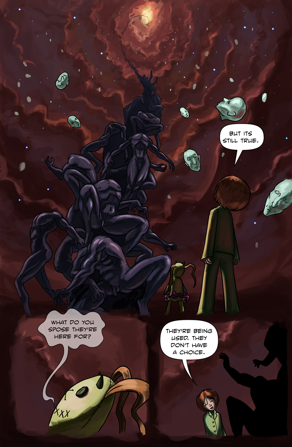 Jackal & Squidgirl negotiate the dangers of the bizarre bone desert and even manage to make a new friend or two. Meanwhile Cutter waits impatiently and hopefully for Iverna to return unscathed from her visit with the dreaded King of Nightmare.