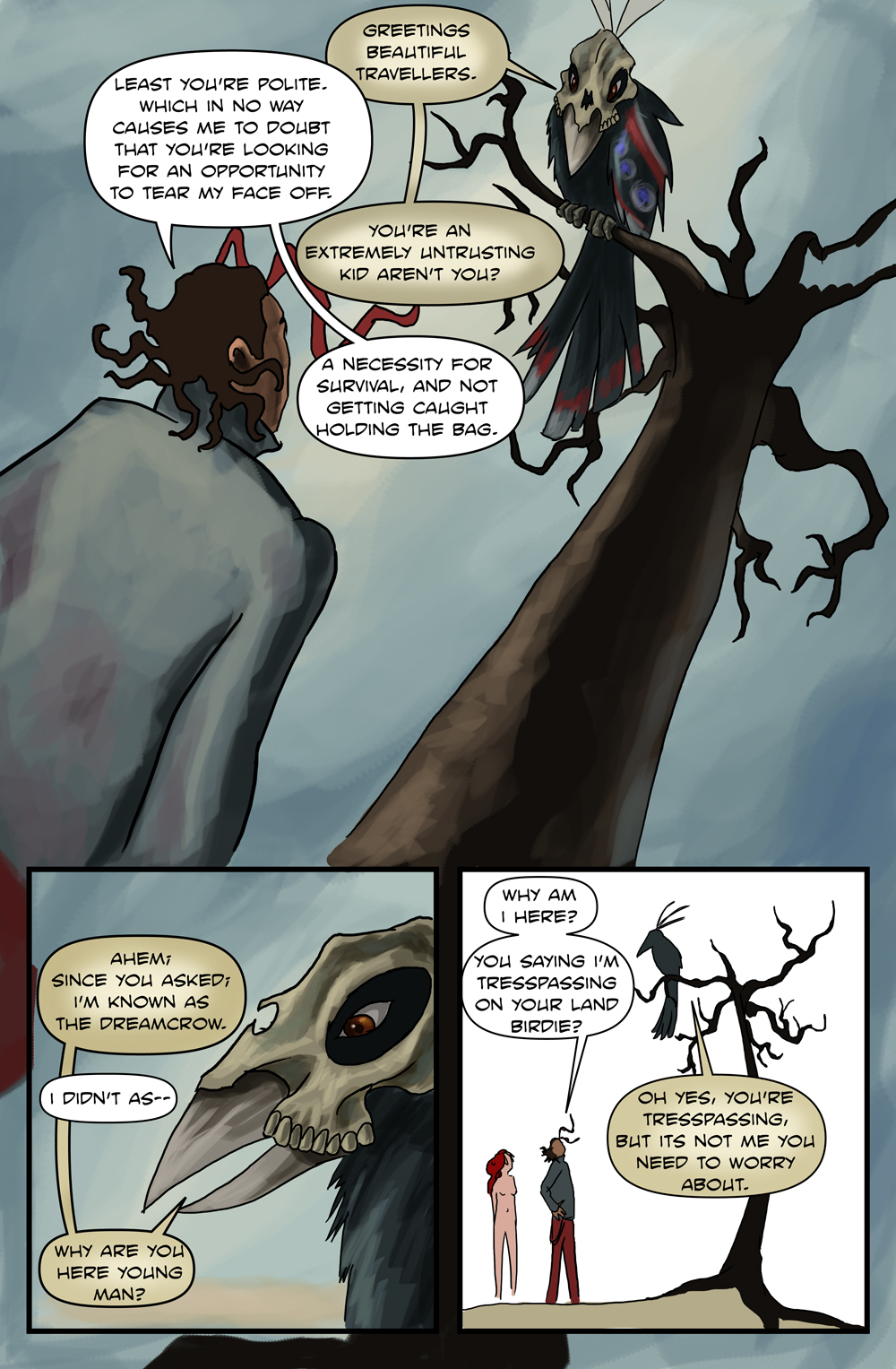 Jackal and Squidgirl continue across the bizarre landscape of the dreamtime as Cutter and Iverna defend against a swarm of abominations with shocking origins.